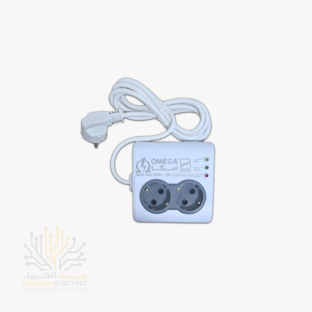 محافظ برق یخچال سیار دو خانه برند امگا مدل P4000 استاندارد ارتدار بدون کلید 10 آمپر 2 متری