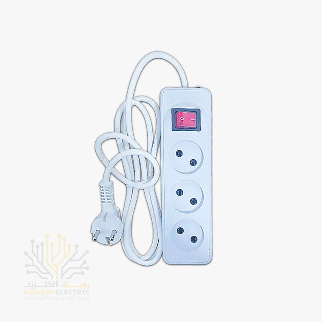 سه راهی برق سیار برند پارت الکتریک مدل شهاب 0512 استاندارد کلید دار کابل 1/8 متری