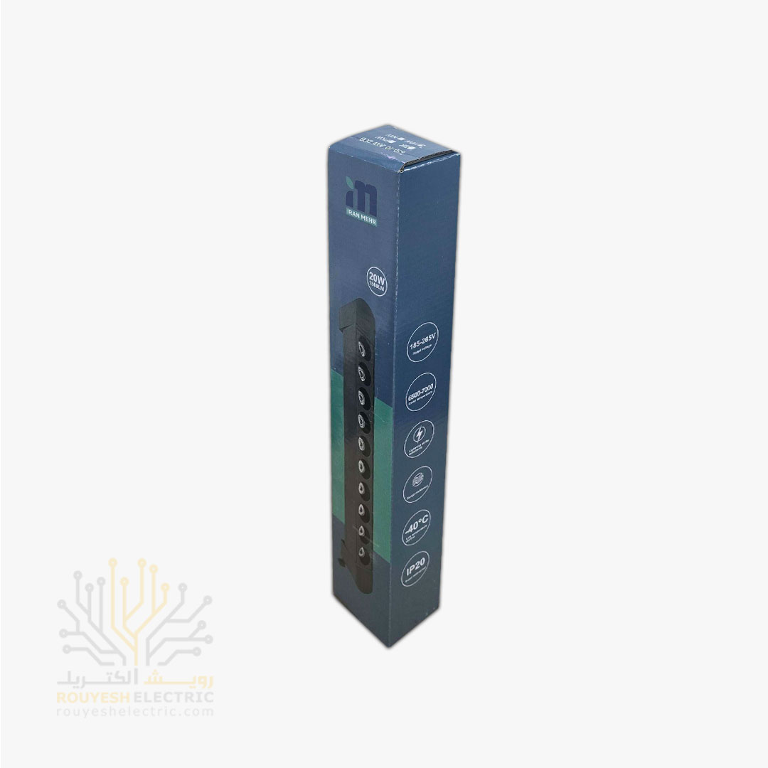 چراغ ریلی 20 وات برند ایران مهر طرح مگنتی بدنه مشکی 2 پایه نور آفتابی