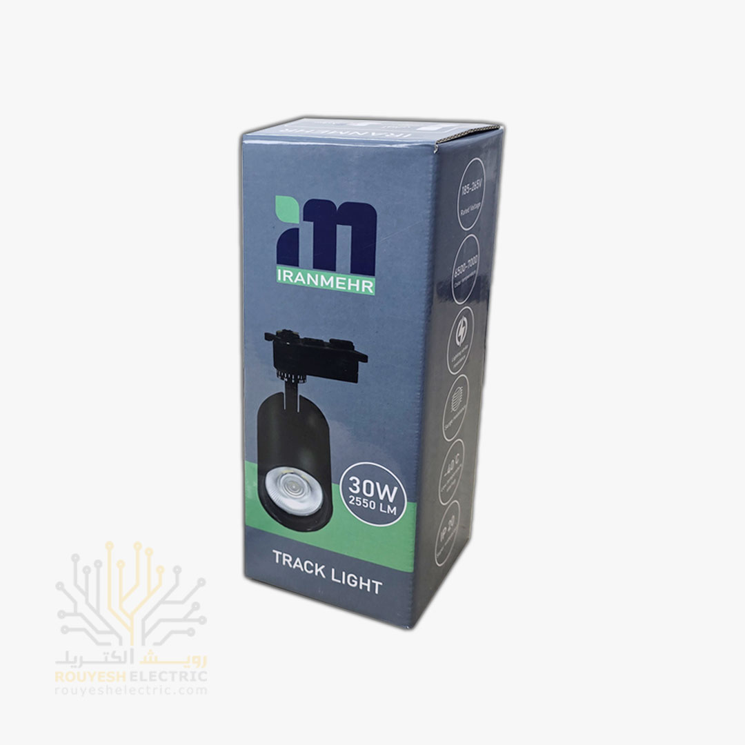 چراغ ریلی ایران مهر با توان 30 وات، با اتصال به سیستم ریلی برق، تامین انرژی می‌شود و از فناوری LED بهره می‌برد که مصرف انرژی پایین و طول عمر بالا دارد. این چراغ‌ها قابلیت تنظیم جهت نور را دارا هستند، بنابراین می‌توان زاویه نور را بر اساس نیاز فضا تغییر داد. نور یخی که این محصول ارائه می‌دهد، رنگ سرد و سفید است، که حس تمیزی و فضای مدرن را تقویت می‌کند و مناسب برای فضاهای کاری و تجاری است.