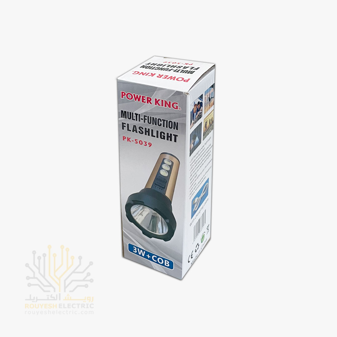 چراغ قوه پاورکینگ مدل COB با استفاده از تکنولوژی چیپ COB، نور یکنواخت و پرنوری تولید میکند.