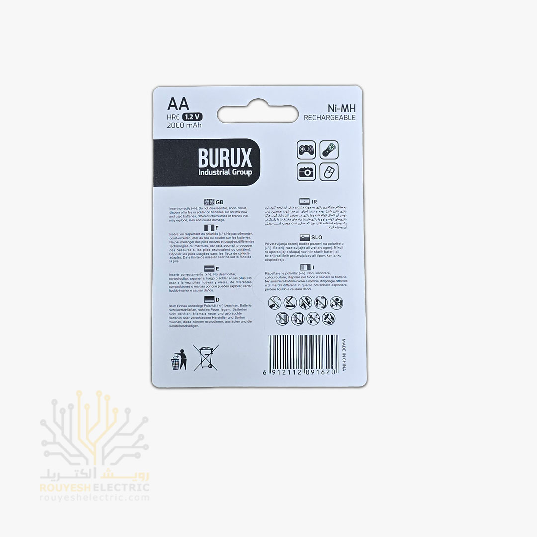 باطری شارژی قلمی برند بروکس 2000 میلی آمپر کارت 2 عددی