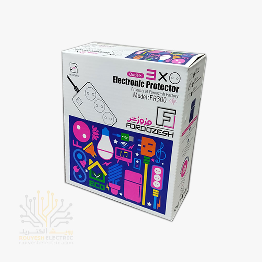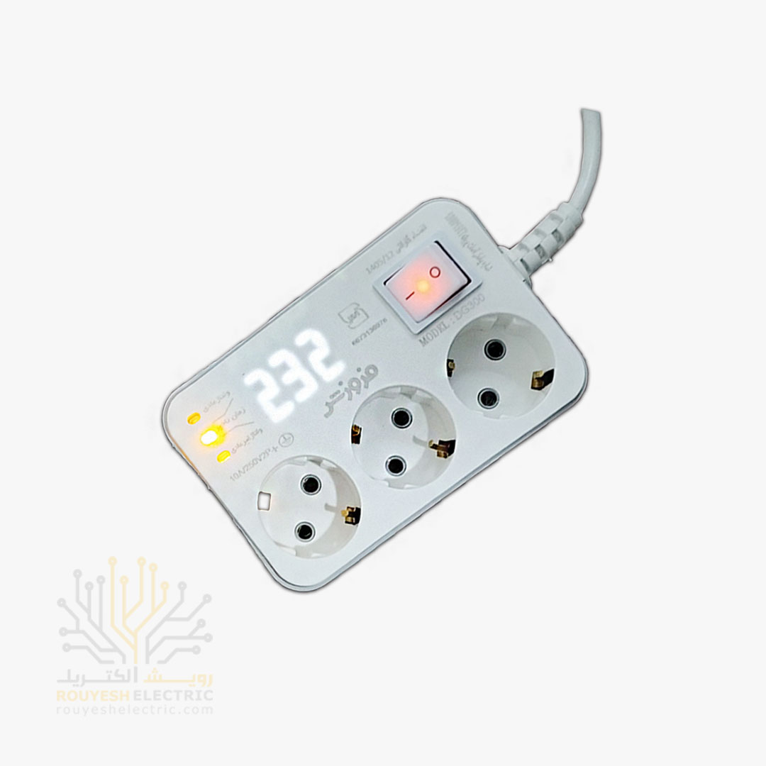محافظ برق یخچال برند فروزش مدل DG300 ارتدار کلید دار 3 خانه دیجیتال 1/8 متری