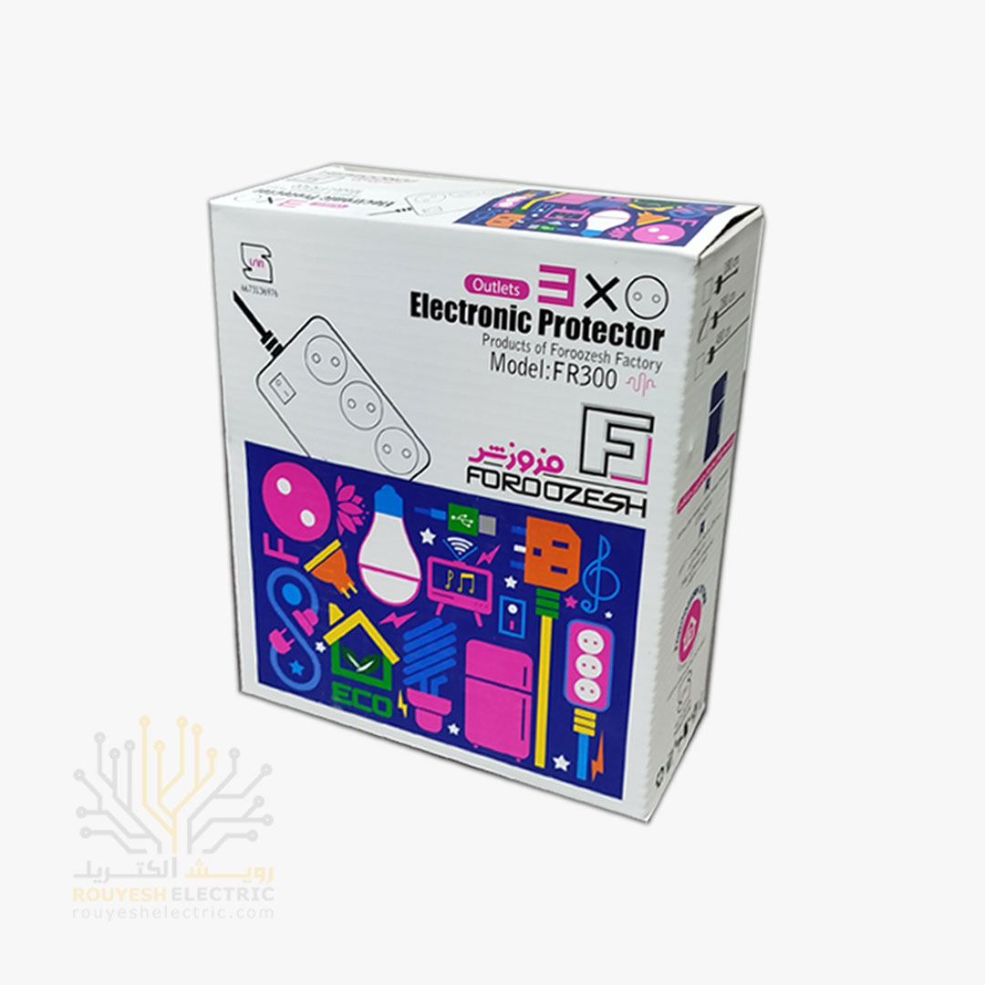 محافظ برق یخچال برند فروزش مدل DG300 ارتدار کلید دار 3 خانه دیجیتال 4/8 متری