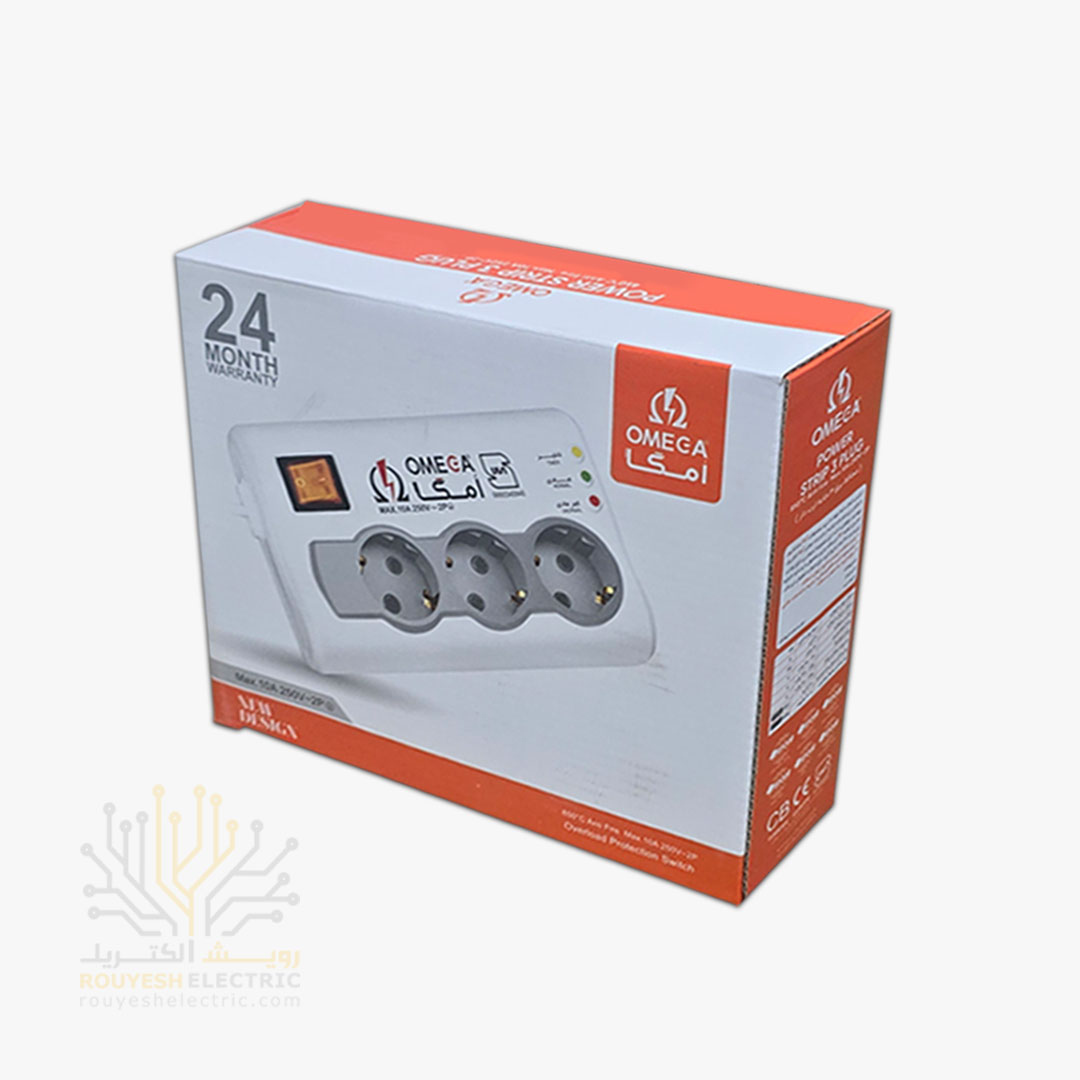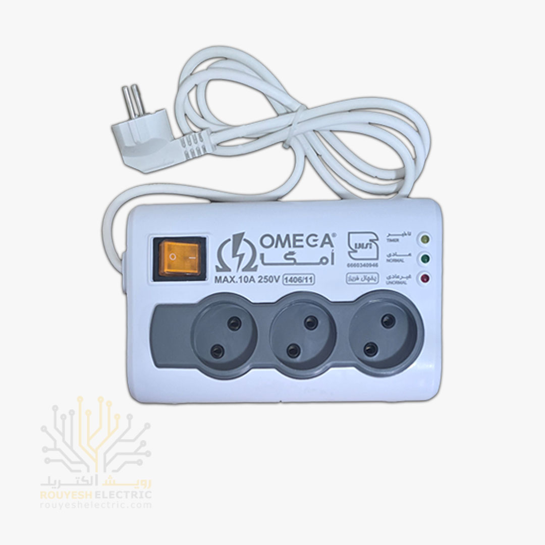 محافظ برق یخچال سیار سه خانه برند امگا مدل p3100 استاندارد ارتدار کلید دار 3 متری
