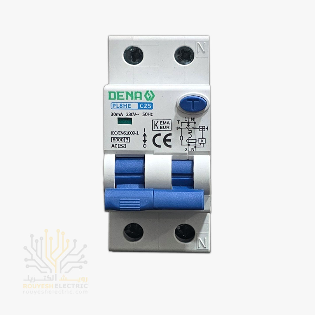 کلید محافظ جان مولتی فانکشن برند دنا تکفاز مدل RCBO الکترونیک 25 آمپر