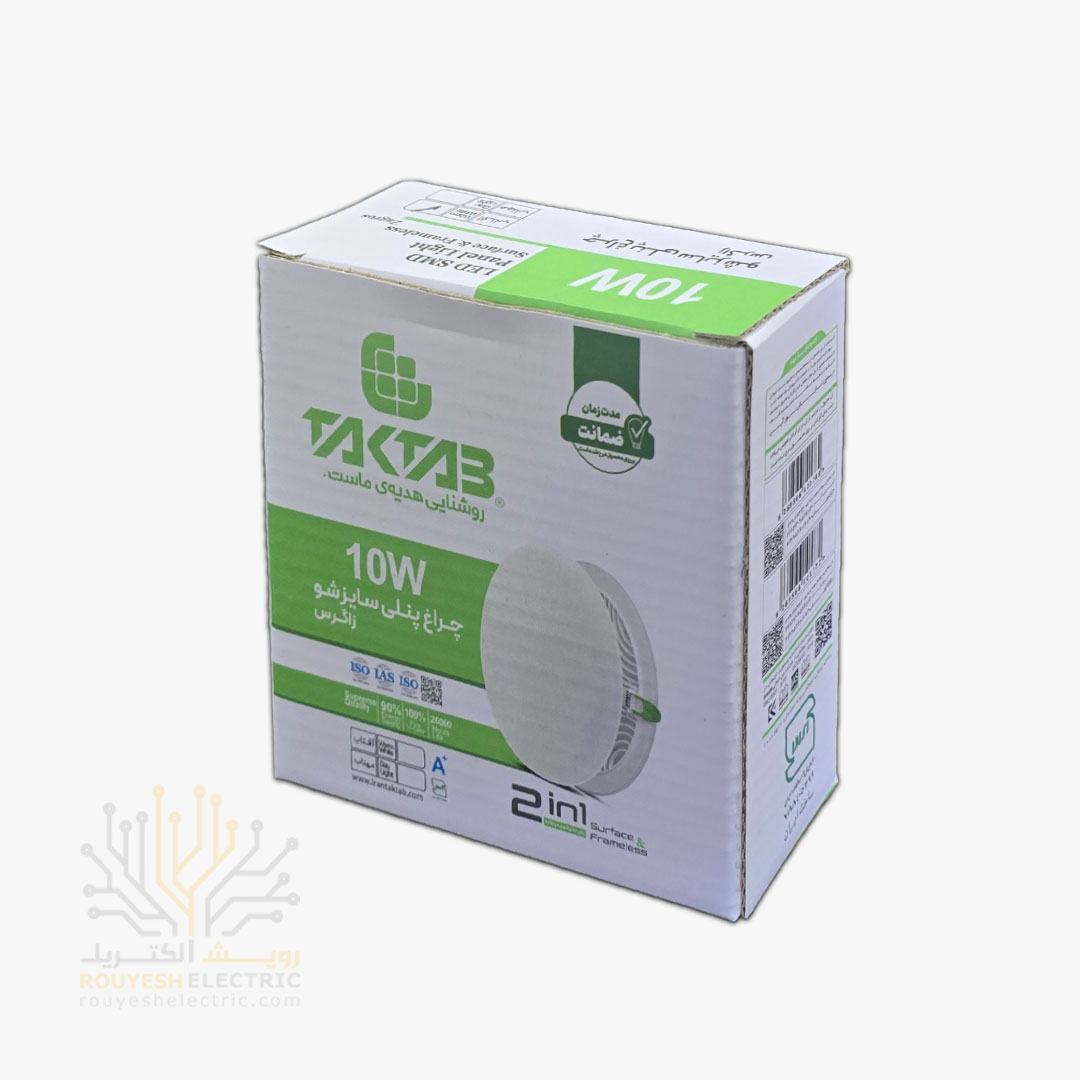 پنل سقفی توکار 10 وات برند تک تاب مدل فول لایت فنر متغیر دایره استاندارد آفتابی