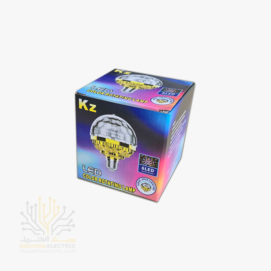 چراغ دیسکویی ۶ وات برند KZ با طراحی بدنه طلایی و بهره‌گیری از ۶ عدد LED رنگی، یک منبع نوری تزئینی و پرکاربرد برای نورپردازی محیط‌های داخلی است. این محصول با جلوه‌ای متحرک و رنگارنگ، گزینه‌ای ایده‌آل برای استفاده در جشن‌ها، مهمانی‌ها، اتاق کودک، فروشگاه‌ها، کافه‌ها و فضاهای سرگرمی به شمار می‌رود. طراحی لامپی و نصب آسان آن، امکان استفاده سریع و بدون نیاز به تجهیزات جانبی را فراهم می‌سازد.