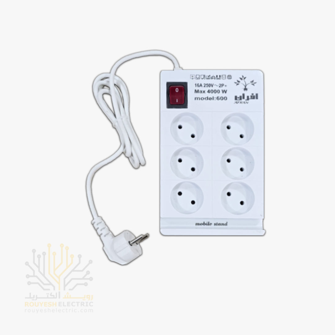 شش راهی برق برند افران کد 600 استاندارد 6 خانه دارای استند موبایل 1/5 متری