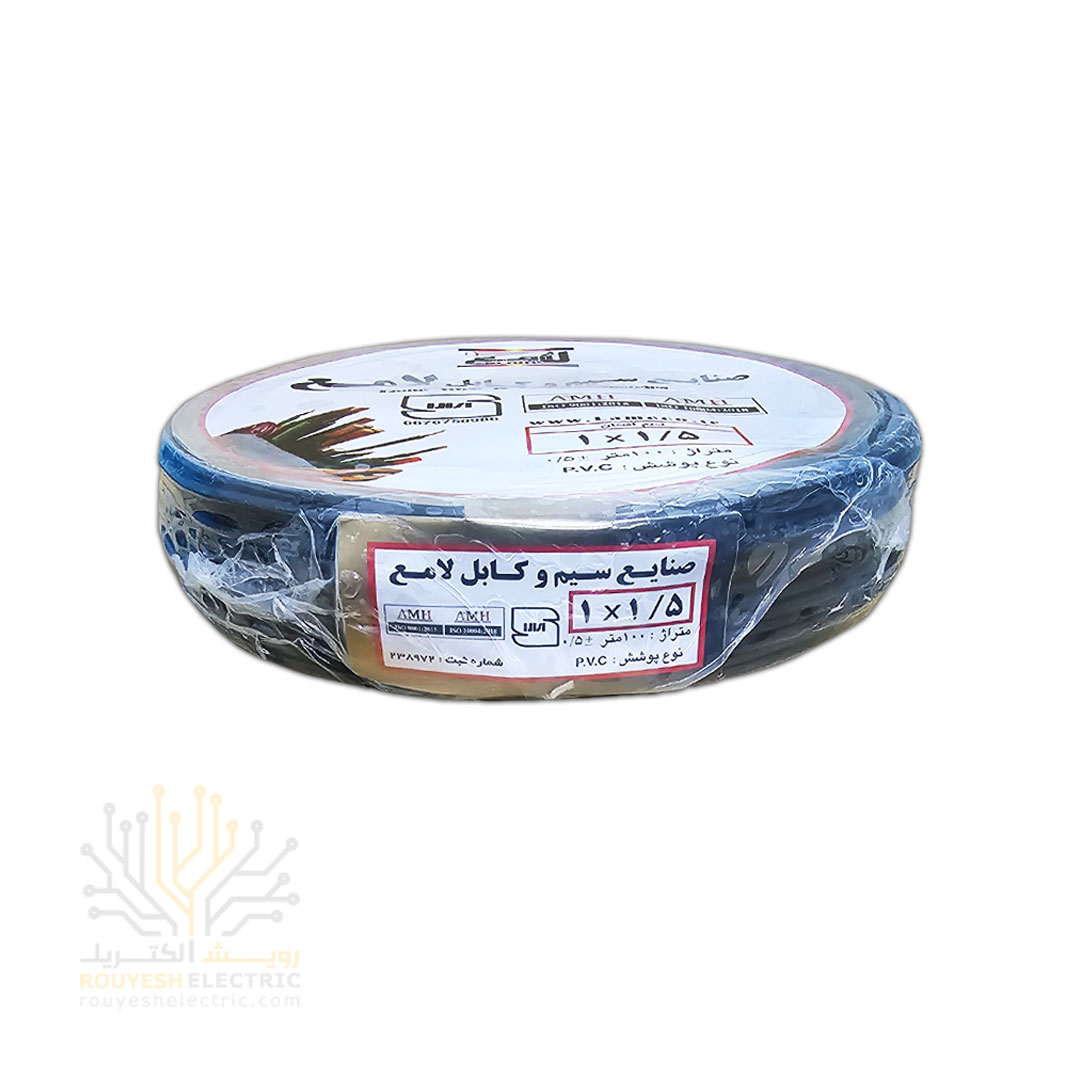 سیم برق نمره 1x1/5 برند لامع استاندارد رنگ مشکی حلقه 100 متری