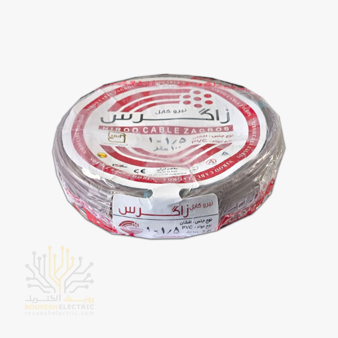سیم برق نمره 1x1/5 برند نیرو کابل زاگرس استاندارد حلقه 100 متری رنگ قهوه ای