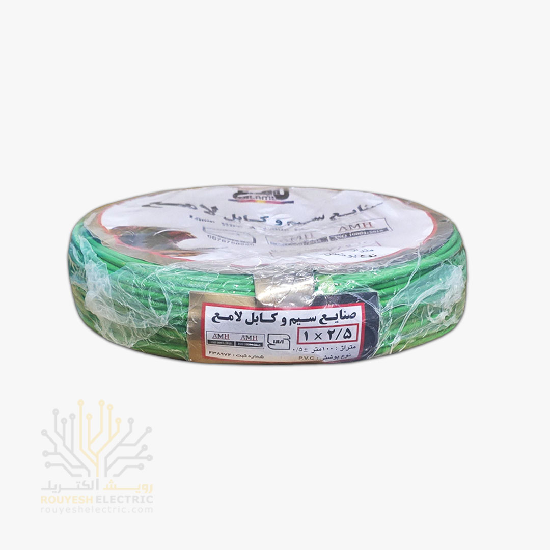 سیم برق نمره 1x2/5 برند لامع استاندارد رنگ سبز حلقه 100 متری