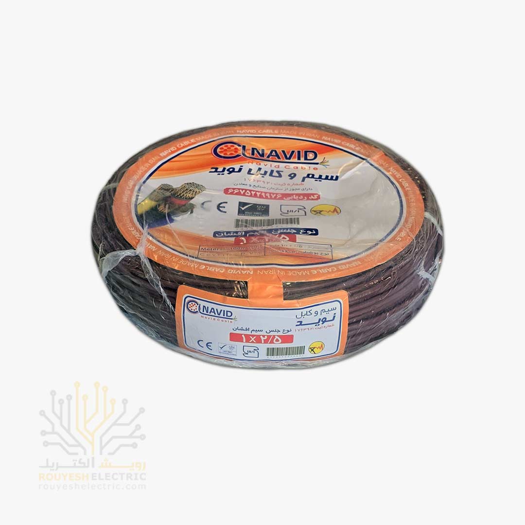 سیم برق نمره 1x2/5 برند نوید استاندارد رنگ قهوه ای حلقه 100 متری