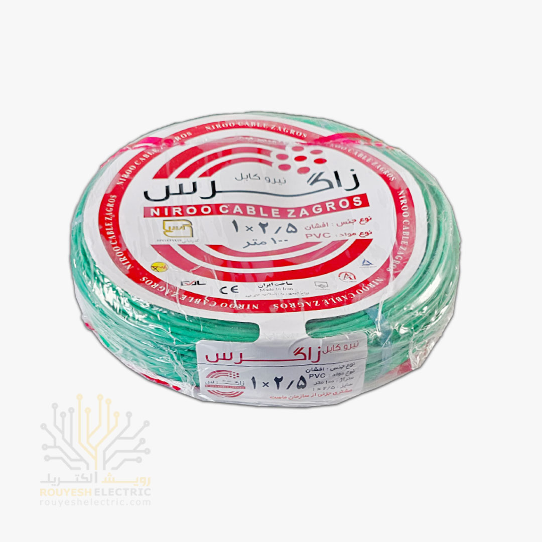 سیم برق نمره 1x2/5 برند نیرو کابل زاگرس استاندارد حلقه 100 متری رنگ سبز