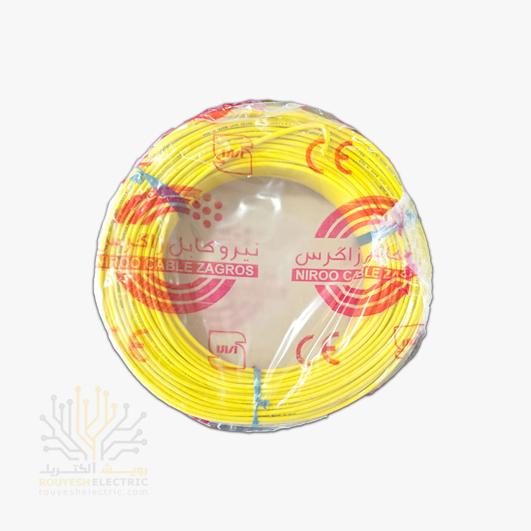 سیم برق نمره 1x2/5 برند نیرو کابل زاگرس استاندارد حلقه 100 متری رنگ زرد