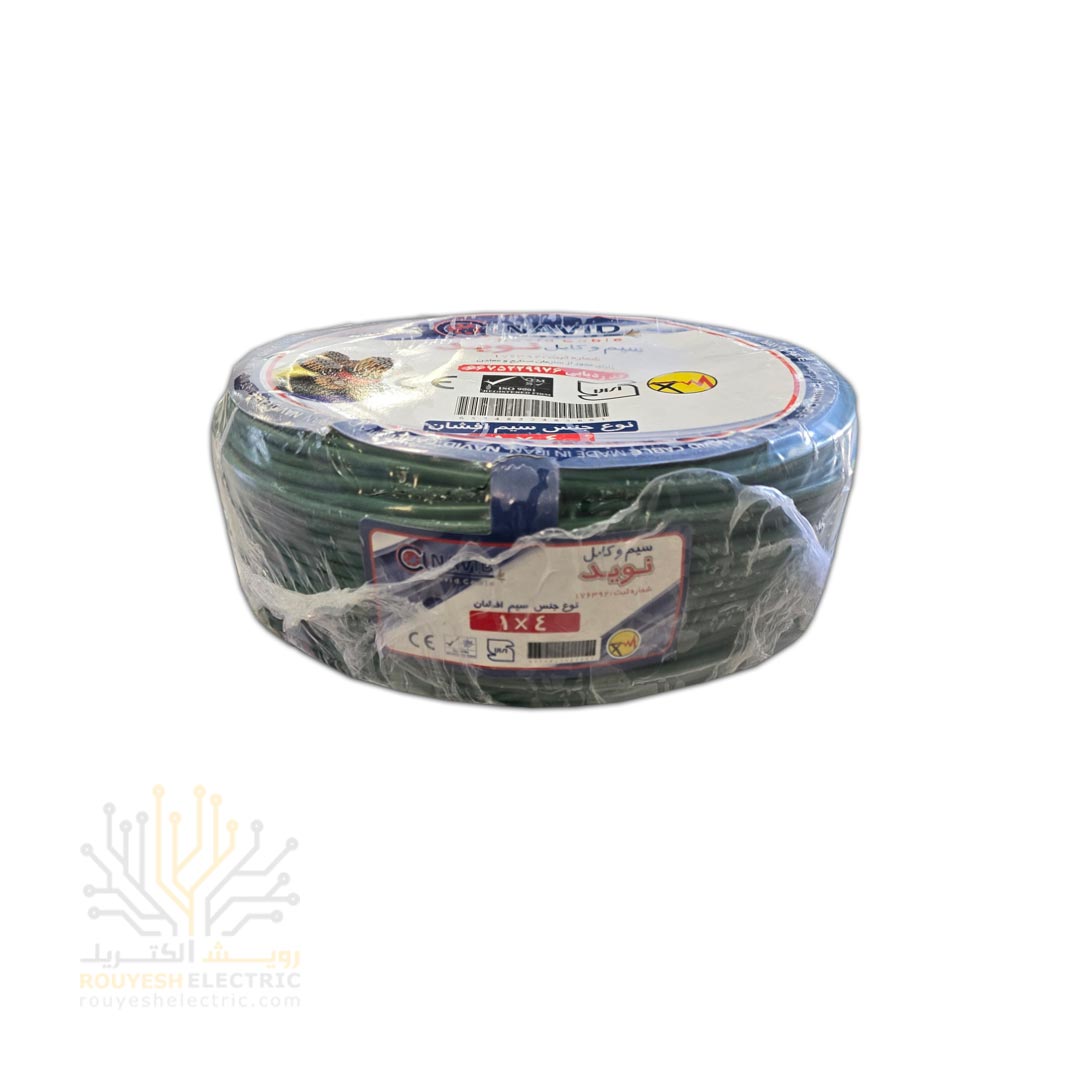 سیم برق نمره 1x4 برند نوید استاندارد رنگ سبز حلقه 100 متری