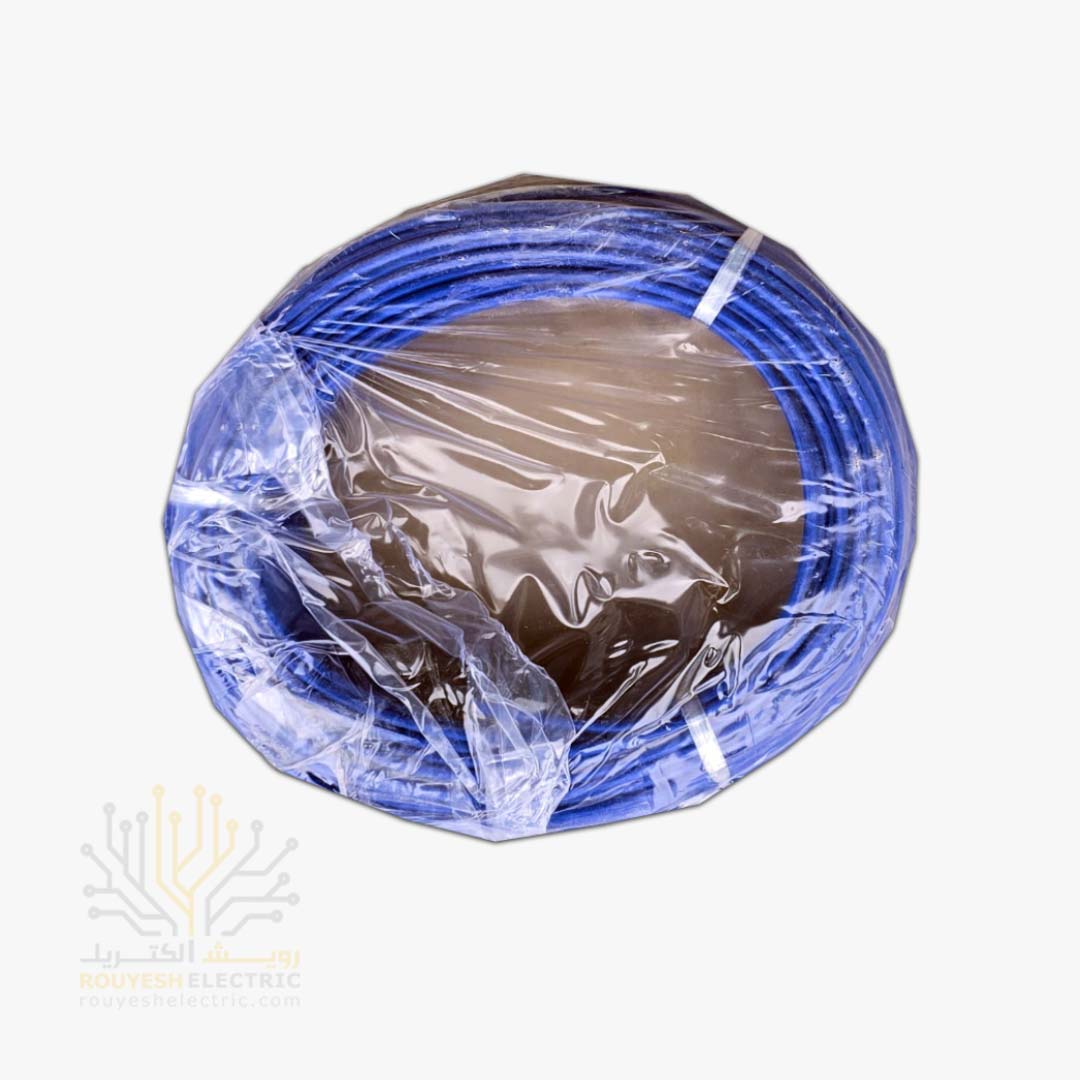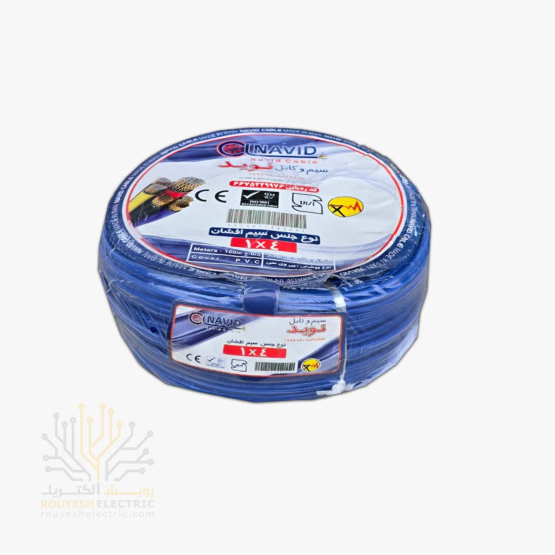 سیم برق نمره 1x4 برند نوید استاندارد حلقه 100 متری رنگ آبی