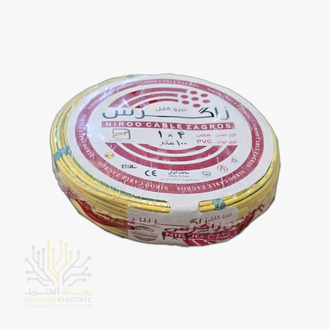 سیم برق نمره 1x4 برند نیرو کابل زاگرس استاندارد حلقه 100 متری رنگ ارت