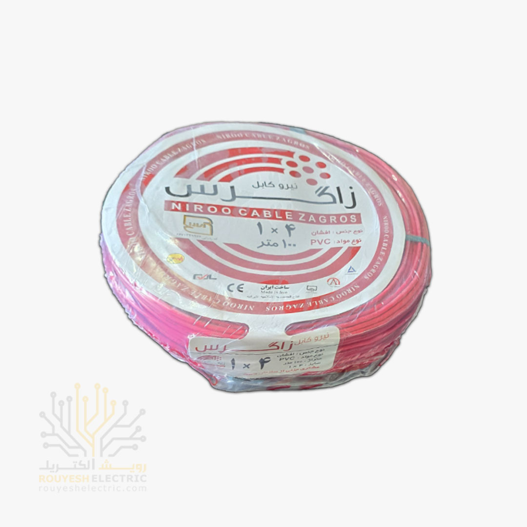 سیم برق نمره 1x4 برند نیرو کابل زاگرس استاندارد حلقه 100 متری رنگ قرمز