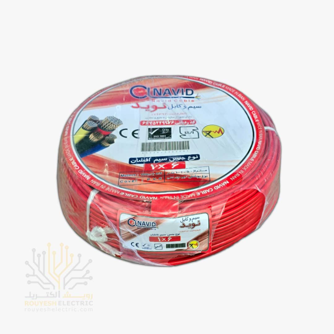 سیم برق نمره 1x6 برند نوید استاندارد رنگ قرمز حلقه 100 متری