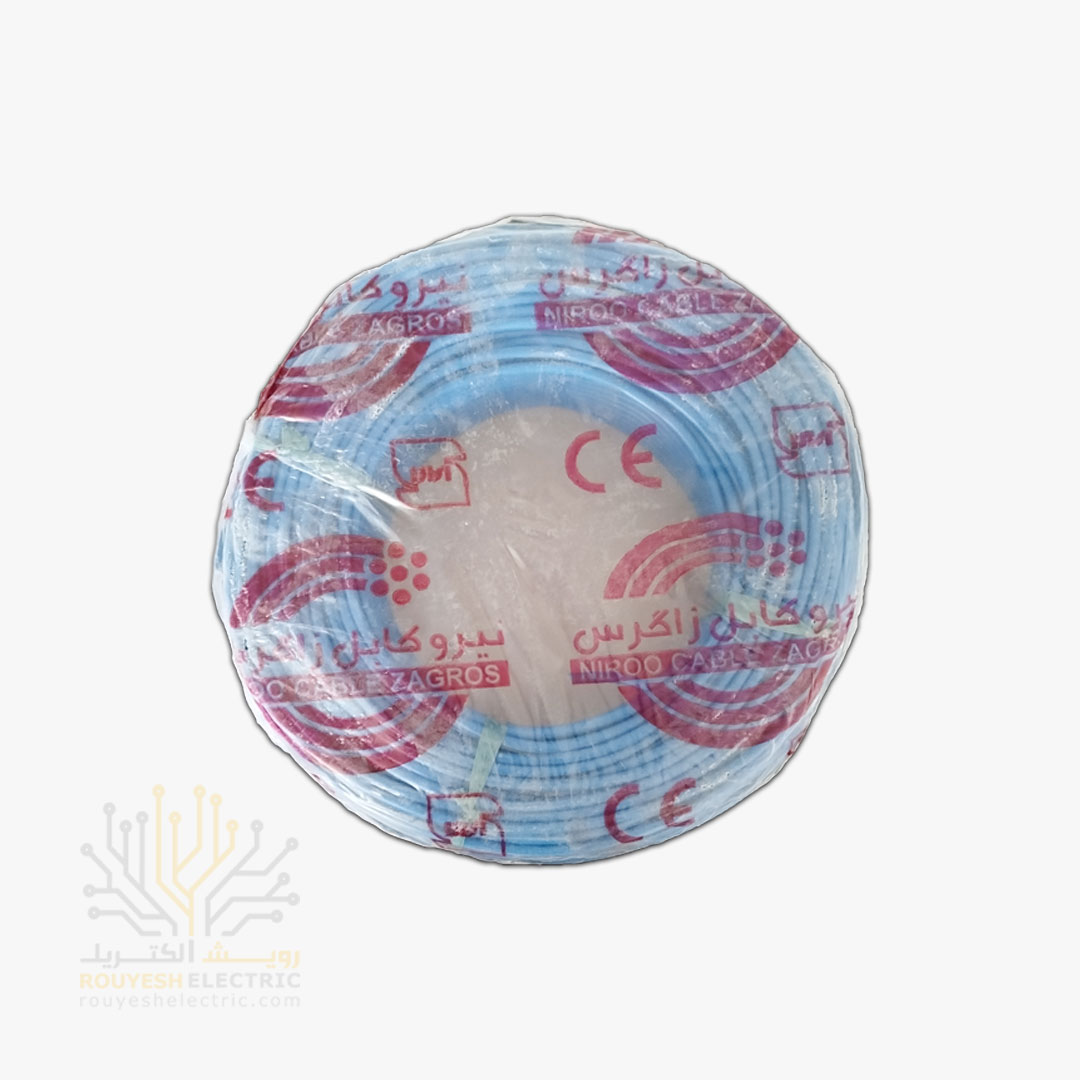 سیم برق نمره 1x6 برند نیرو کابل زاگرس استاندارد حلقه 100 متری رنگ آبی