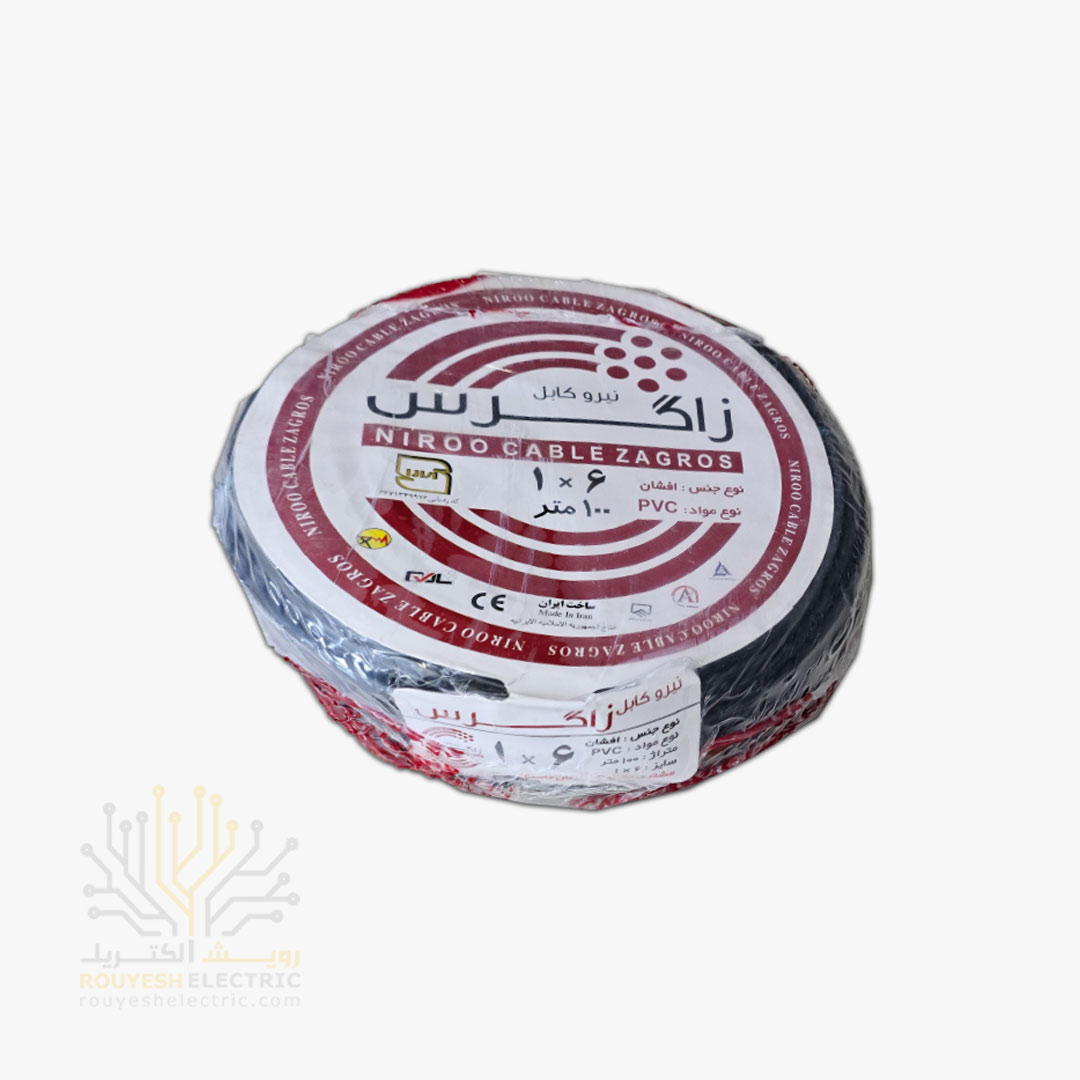 سیم برق نمره 1x6 برند نیرو کابل زاگرس استاندارد حلقه 100 متری رنگ قرمز موجود در شرکت ما تولید کشور ایران می‌باشد از جمله مزایای این محصول می‌توان به استاندارد بودن ، تنوع در رنگ ، نرم و انعطاف‌پذیر بودن مغزی مسی ، روشن بودن رنگ مس و روکش پلاستیکی با کیفیت اشاره کرد. این محصول دارای ضمانت سلامت محصول است که اطمینان خاطر مشتریان را نسبت به کیفیت جنس خریداری شده فراهم می‌سازد.