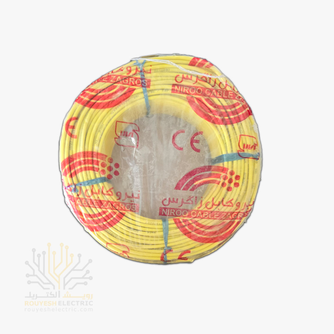 سیم برق نمره 1x6 برند نیرو کابل زاگرس استاندارد حلقه 100 متری رنگ زرد