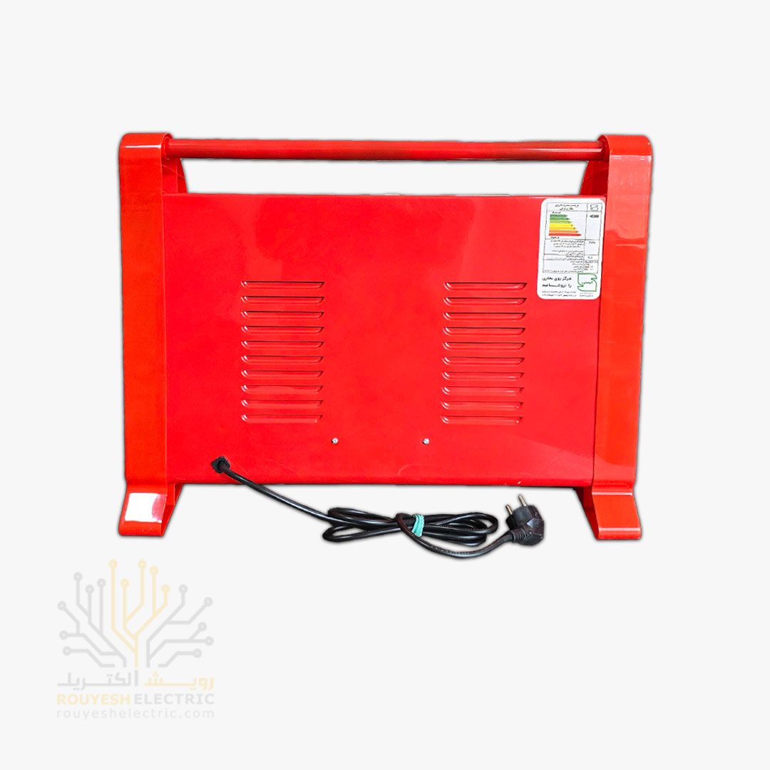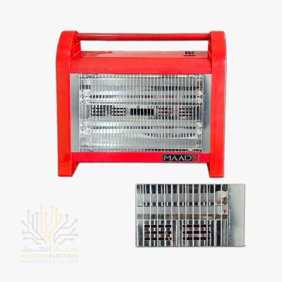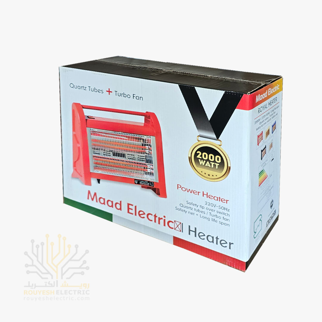 بخاری برقی استاندارد برند ماد الکتریک مدل رویال 4 شعله 2000 وات فن دار بدنه قرمز
