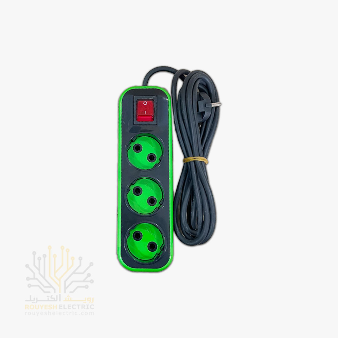 سه راهی برق سیار برند پارت الکتریک مدل شهاب 0512 استاندارد کلید دار کابل 1/8 متری