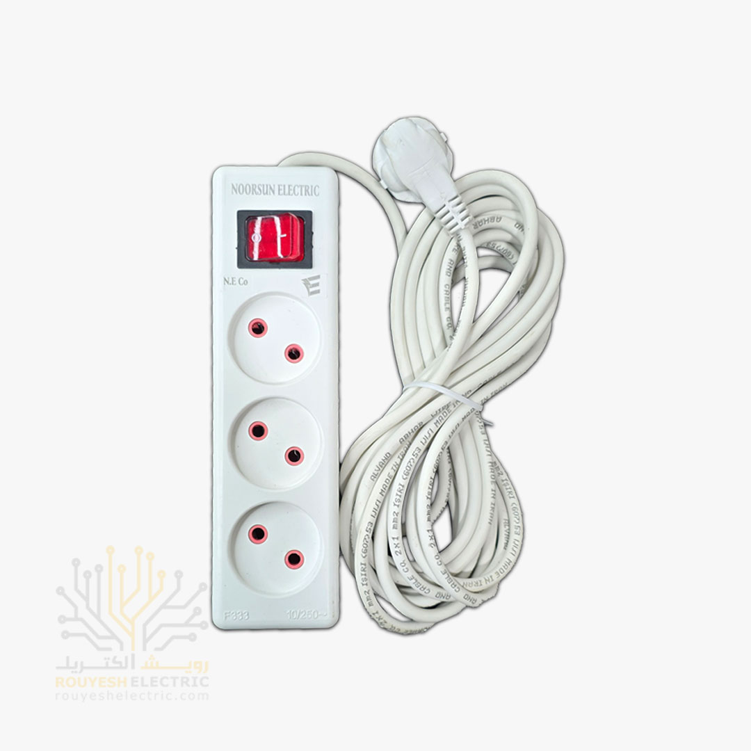 سه راهی برق سیار برند نورسان کلید دار طرح استاندارد کابل 5 متری