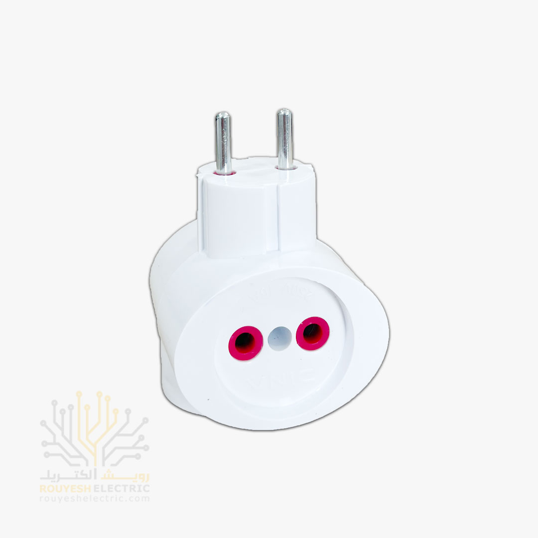 سه راهی برق دیواری برند دینا مدل کپل گرد شرتک دار بدون جعبه بدنه سفید