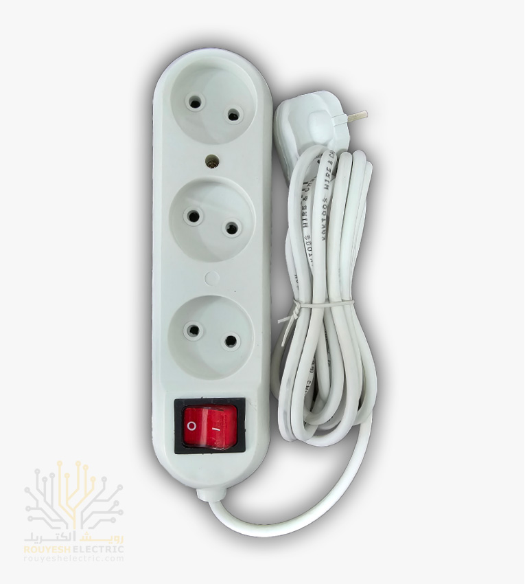 سه راهی برق سیار برند افق مدل 303 استاندارد کلید دار کابل 3 متری