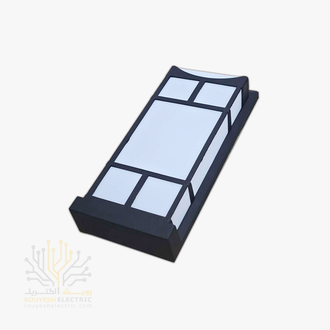 چراغ دیواری دکوراتیو 12 وات برند ایران مهر مدل مکعب دو طرفه ایران 23 بدنه مشکی نور آفتابی