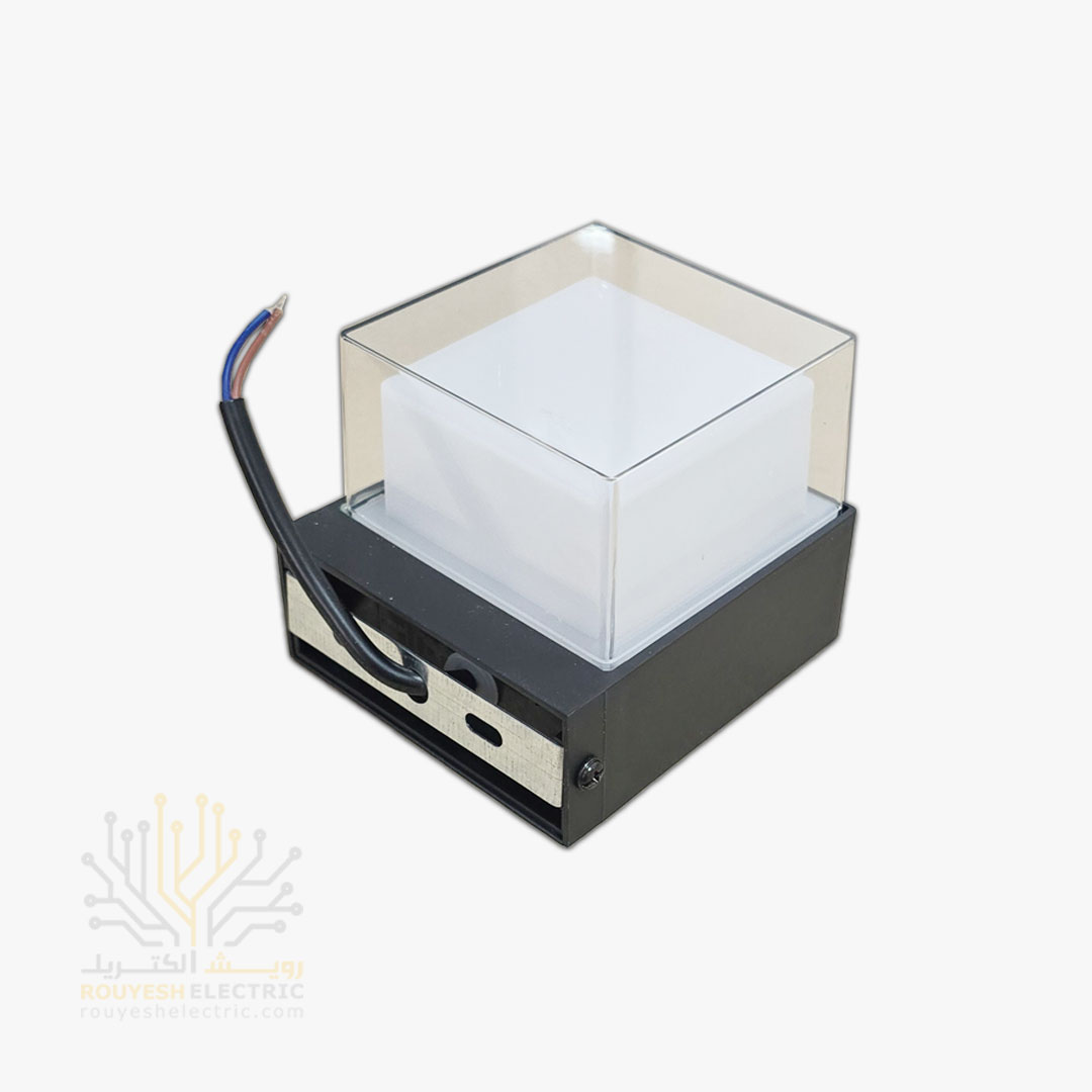 چراغ دیواری دکوراتیو 6 وات برند ایران مهر مدل مکعب یک طرفه کد ایران 21 بدنه مشکی نور یخی