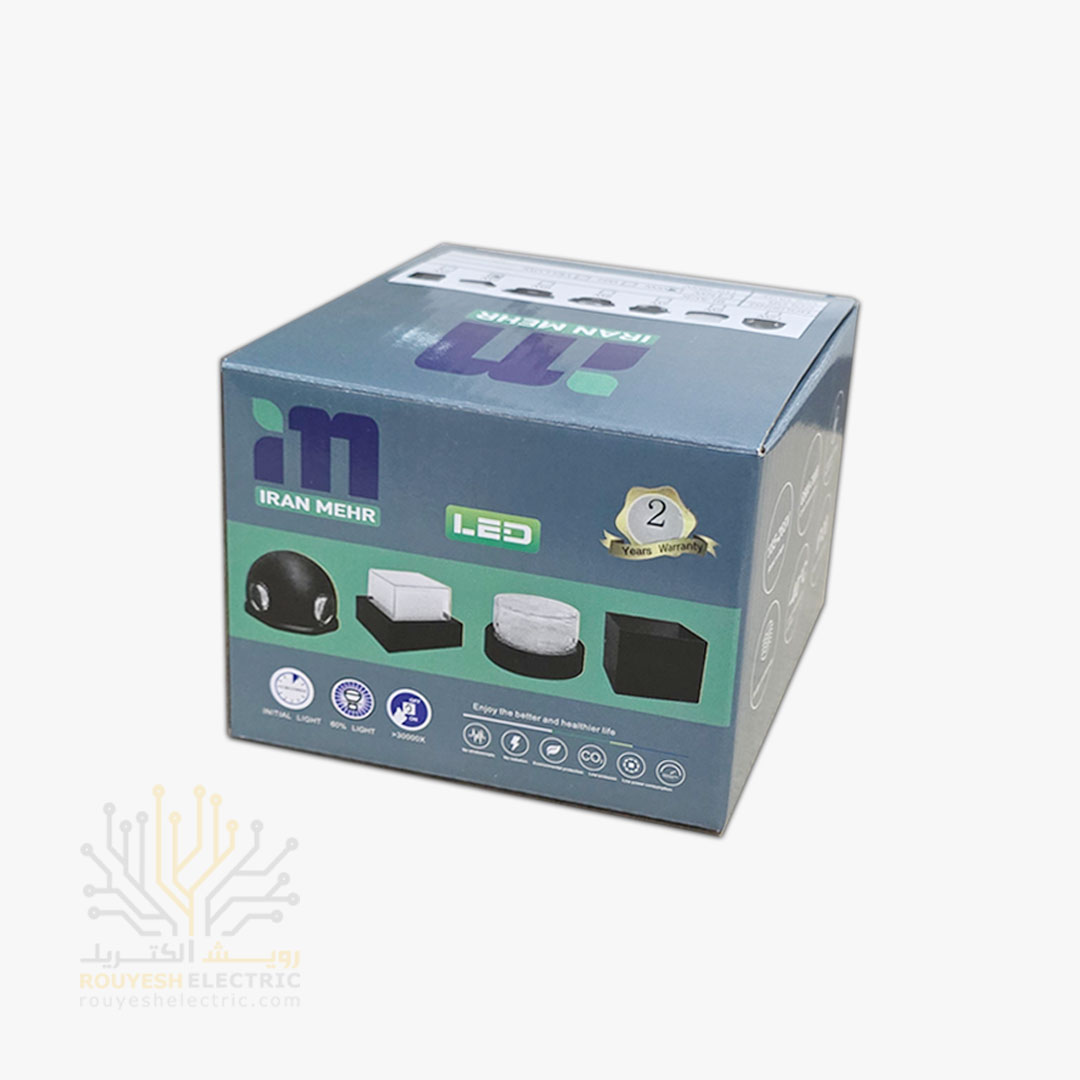 چراغ دیواری دکوراتیو 6 وات برند ایران مهر مدل مکعب یک طرفه، یک نورپردازی زیبا و مدرن است که با طراحی خاص و شکل مکعب، برای تزیین و روشنایی محیط‌های داخلی و خارجی طراحی شده است. این چراغ مناسب برای نصب بر روی دیوار در فضاهای مسکونی، تجاری، اداری، فروشگاه‌ها، کافی‌شاپ‌ها و فضاهای باز است و با نور یخی خنک، جلوه‌ای معاصر و جذاب به فضا می‌بخشد. طراحی یک طرفه این محصول، تمرکز بر نوردهی در یک جهت دارد و برای فضاهایی که نیاز به تمرکز نور در یک سمت است، مناسب است.