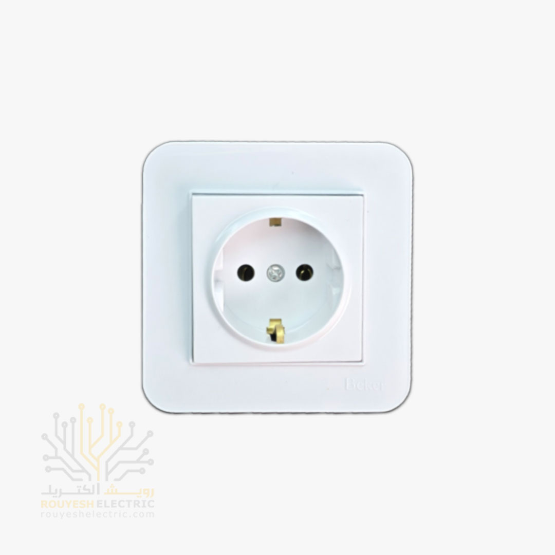 پریز برق ارتدار توکار برند بکر با مغزی سرامیکی مدل آتا سفید