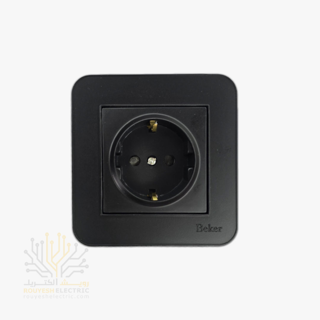 پریز برق ارتدار توکار برند بکر با مغزی پلی کربنات مدل آتا مشکی