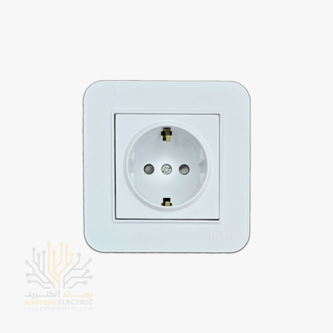 پریز برق ارتدار توکار برند بکر با مغزی پلی کربنات مدل آتا سفید