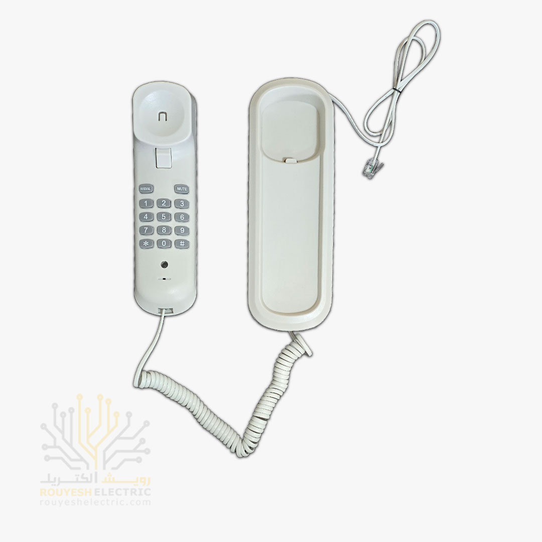 این یک تلفن رومیزی/دیواری هست که برای برقراری ارتباط صوتی طراحی شده. ظاهر ساده و کلاسیک اون باعث میشود به راحتی با دکوراسیونهای مختلف هماهنگ بشه. این مدل به رنگ سفید عرضه طراحی شده که حس تمیزی و سادگی رو القا میکند و برای استفاده در منزل یا دفتر کار کاربرد داره.