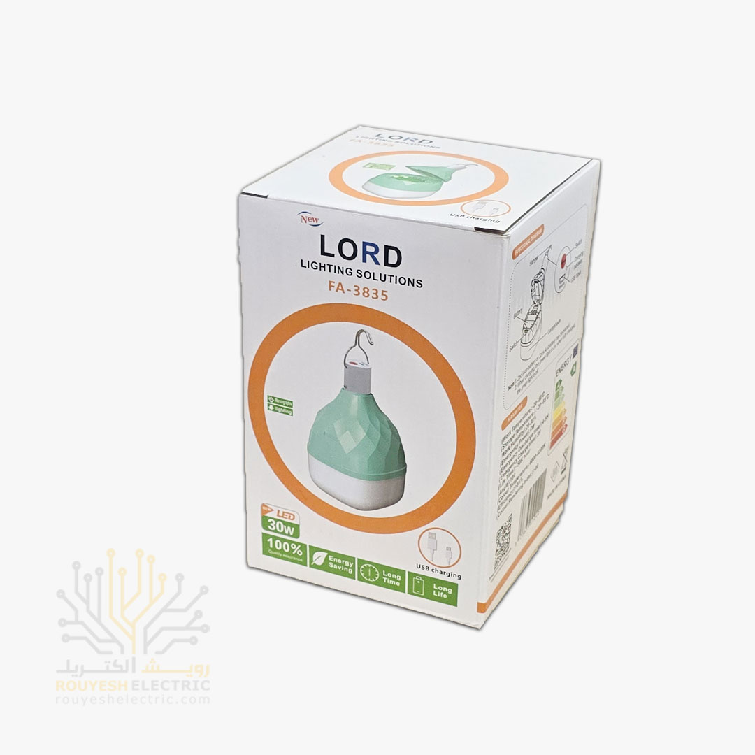 این چراغ اضطراری یک لامپ شارژی با توان ۳۰ وات است که به شکل لامپ‌های معمولی (طرح بالب) طراحی شده و دارای سه حالت نوردهی است. به دلیل داشتن گیره نگهدارنده، به‌راحتی در مکان‌های مختلف مثل چادر، اتاق، خودرو یا محل کار قابل نصب است. این چراغ برای مواقع قطع برق، کمپینگ، سفر، یا استفاده در فضاهای بدون دسترسی به برق شهری بسیار کاربردی است.